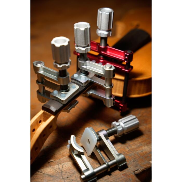 I nuovi morsetti CAG per incollare l'incastro e la tastiera sono i migliori strettoi in commercio, studiati e realizzati con i materiali migliori per garantire leggerezza e robustezza. Fatti in alluminio e carbonio, hanno un rivestimento sostituibile in silicone che protegge lo strumento da segni e che non aderisce con la colla preservando la vernice ed il legno.