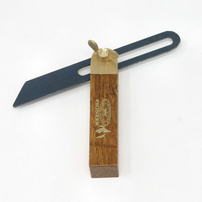 Falsa squadra da 10 cm in legno lucidato con finitura in ottone massiccio e galletto di regolazione.