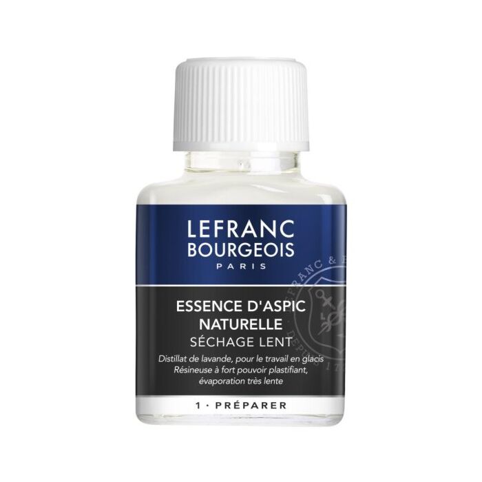 L'essenza di lavanda, spigo o d'aspice della casa Lefranc & Bourgeois è ottenuta dalla distillazione della lavanda. Il suo utilizzo conferisce ai colori una pasta untuosa grazie alla sua lenta volatilità. Ha l'odore di lavanda. In liuteria si usa aggiungendone qualche goccia alla vernice, sia ad alcool che ad olio, per far scivolare meglio il pennello. L'essenza di spigo viene anche usata come diluente per i rosinati.