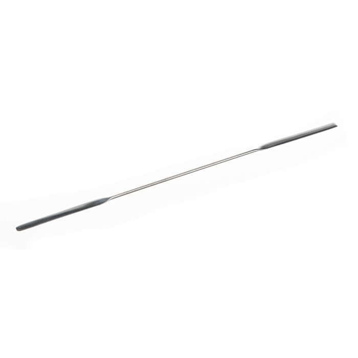 Micro spatola rigida in acciaio con doppia punta squadrata, indispensabile nel restauro del legno per piccoli incollaggi e stuccature.
